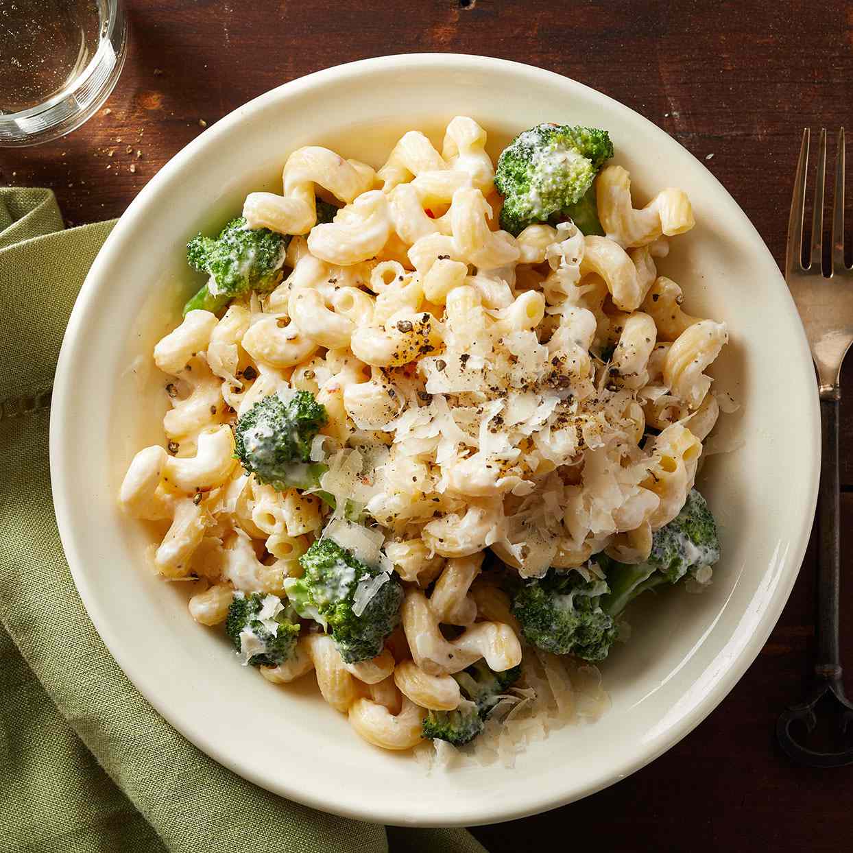 If you’re looking for a simple weeknight pasta dish, look no further. This vegetarian dinner is done in only 20 minutes and packs plenty of broccoli along with creamy goodness thanks to mascarpone cheese and low-fat Greek yogurt.