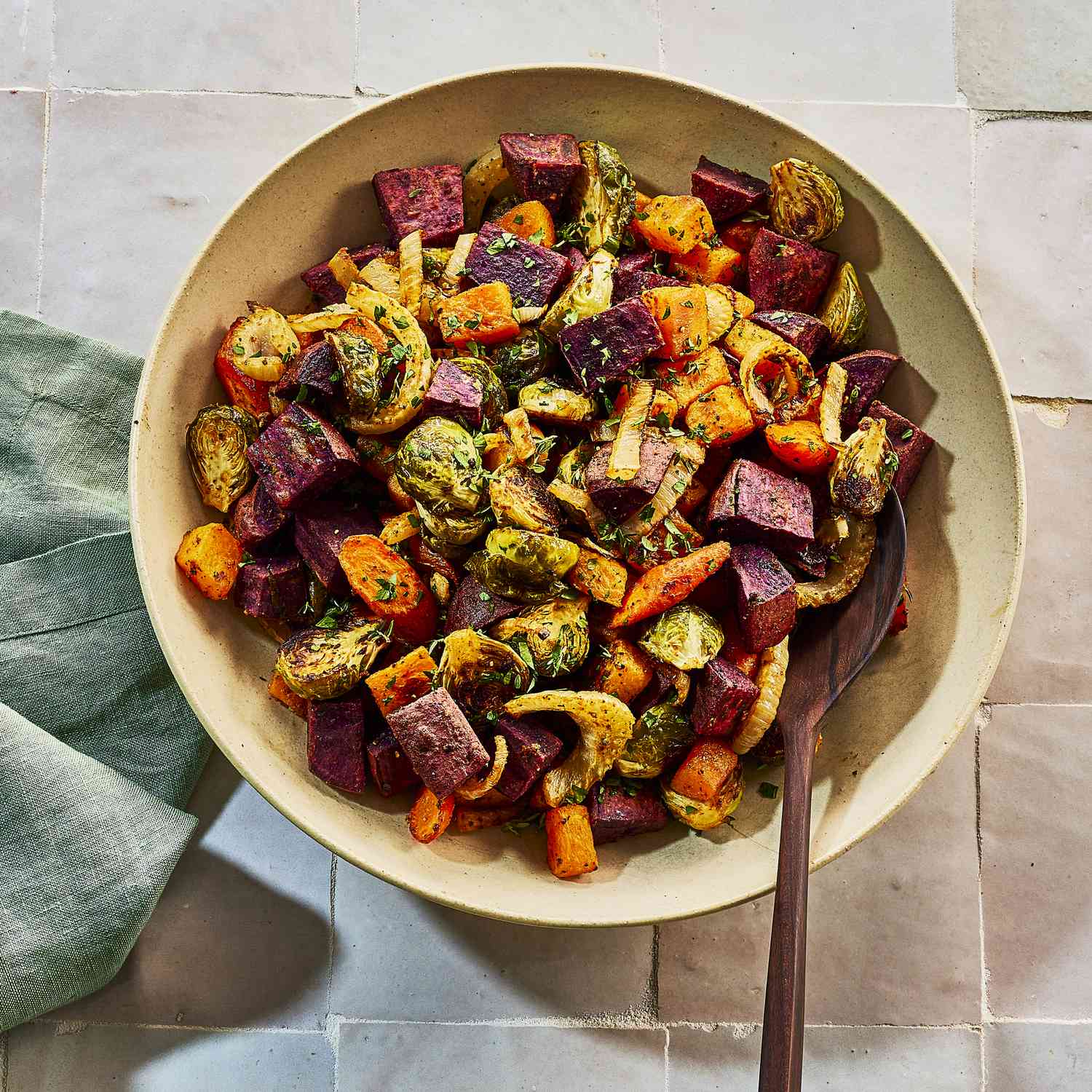 This medley of roasted vegetables is a colorful side packed with anti-inflammatory ingredients like carrots, butternut squash and Brussels sprouts. Purple sweet potatoes offer all the perks of regular sweet potatoes with an extra dose of anthocyanins, the pigments that deliver their deep color. If you can’t find purple sweet potatoes, regular sweet potatoes work just as well.