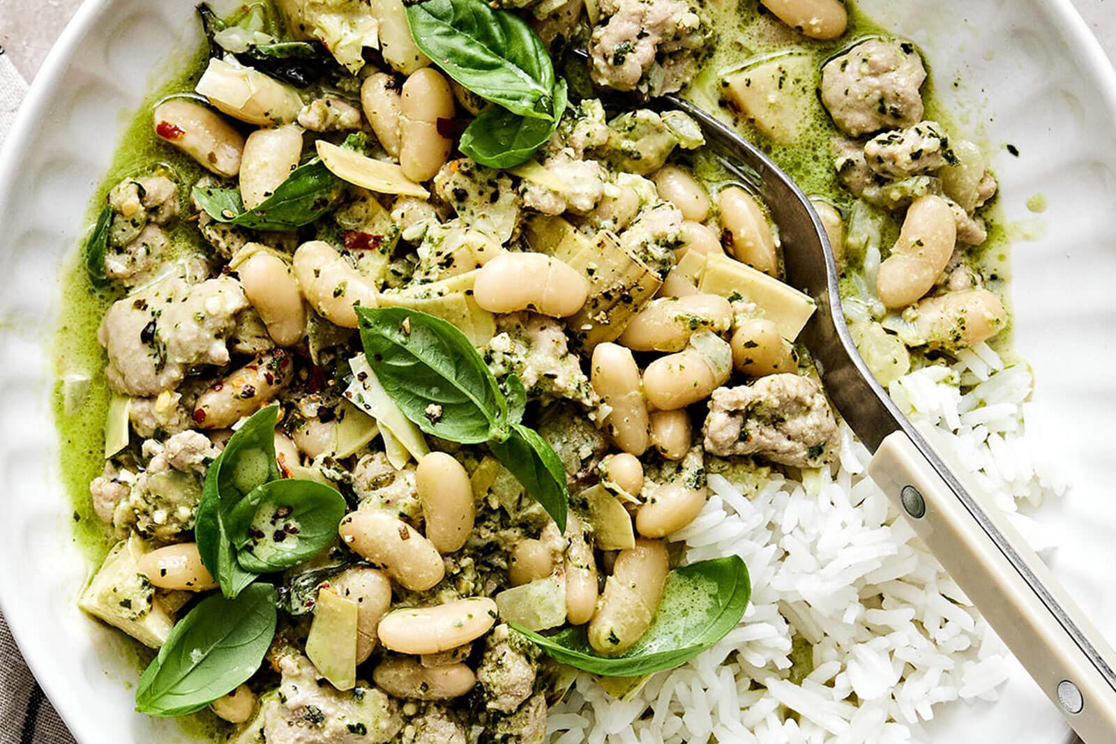 This one-skillet wonder combines ground turkey, veggies, and a fresh, creamy pesto sauce for the best summer dinner. Bonus—it comes together fast for busy weeknights.