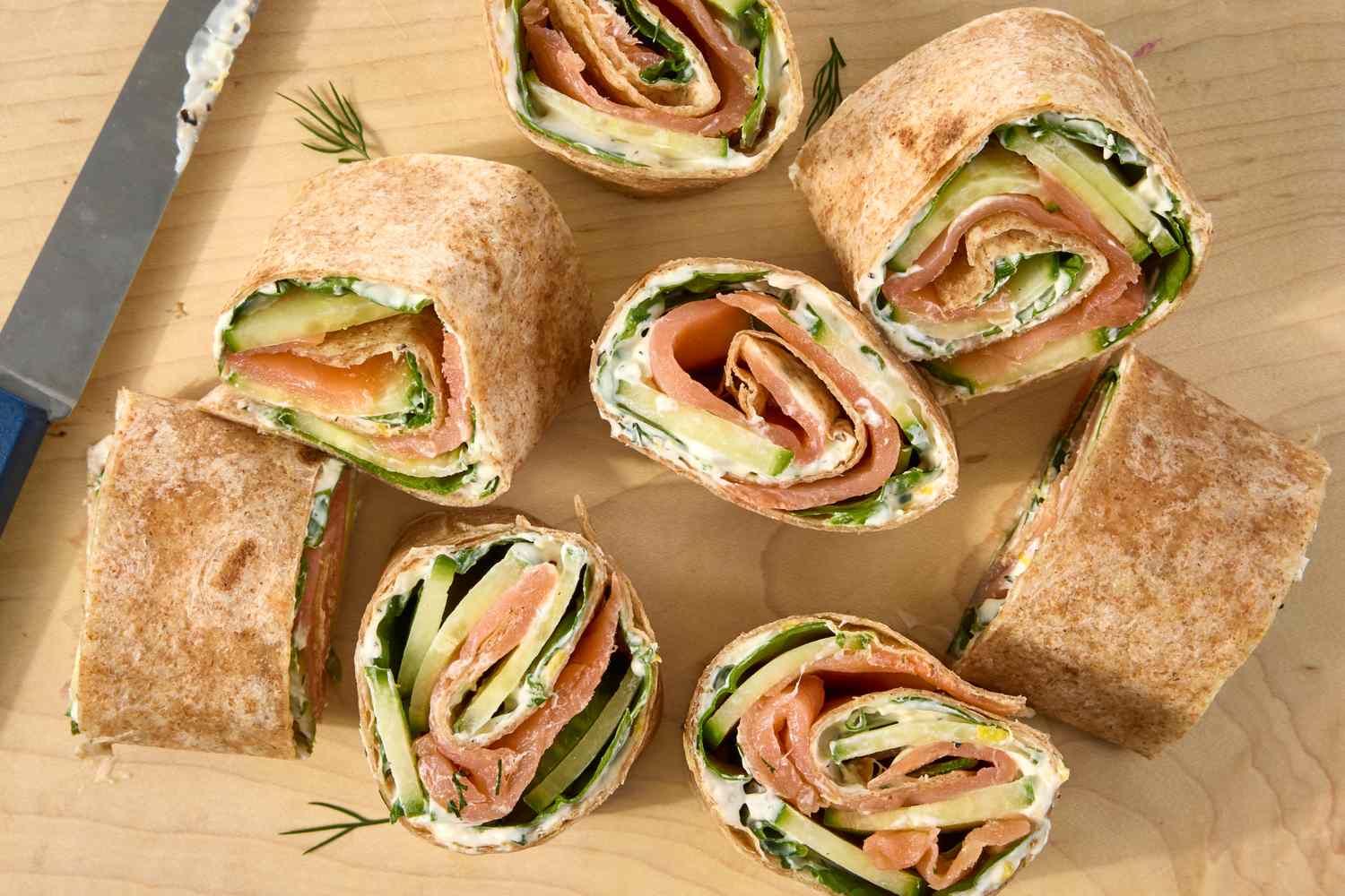Whether you’re looking for an elegant starter or a simple meal or snack, these Salmon Roll-Ups have you covered. Omega-3-rich smoked salmon teams up with antioxidant-filled cucumbers and baby spinach. A creamy spread is spiked with fresh chives and dill, while lemon zest cuts through some of the richness. Everything is rolled into a fiber-filled whole-wheat wrap and cut into perfectly poppable bites. Keep reading for our expert tips, including ingredient substitutions.