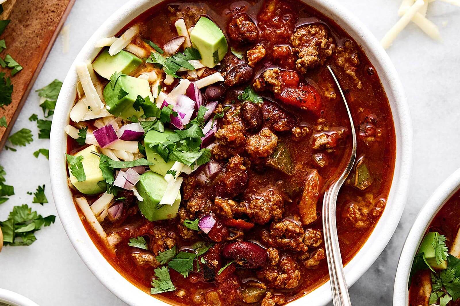 When the temps start to drop, you can bet I’m reaching for a big pot of chili! It’s the best kind of comfort food and the perfect combination of hearty, cozy, and healthy. It warms me from the inside out and gives me that “hug in a bowl” feeling I crave during the colder months. But most importantly, it’s a customizable stew I can easily meal prep to enjoy through the entire season. You’ll always find jars of chili stored in my freezer for an easy reheat! Whether it’s a classic chili with ground beef or a lighter white chicken chili, here are all my favorite ways to build the perfect bowl of chili this fall and winter.