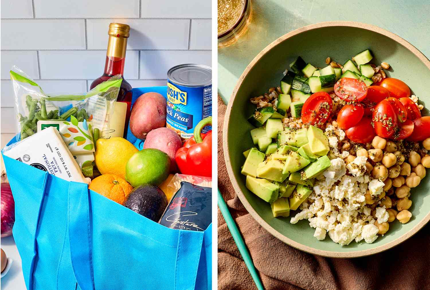 The Mediterranean diet encourages eating more whole grains like farro, as they are high in plant-based protein and fiber. These bowls are a great way to incorporate the whole grain along with a variety of vegetables, from crunchy cucumbers to juicy tomatoes. Chickpeas offer even more protein and fiber to make this recipe satisfying. Toss everything with a simple lemon-herb vinaigrette and you have an easy dinner on the table in just 15 minutes.
