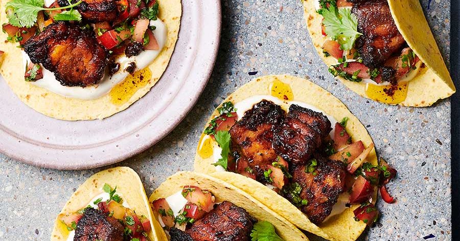 Meanwhile, make the salsa by combining the plums, chives, coriander, chilli, lime zest and juice and the sugar (depending on the ripeness of the plums, you may need more or less sugar; start with 1 tsp, then taste). Season with salt, mix well and set aside.