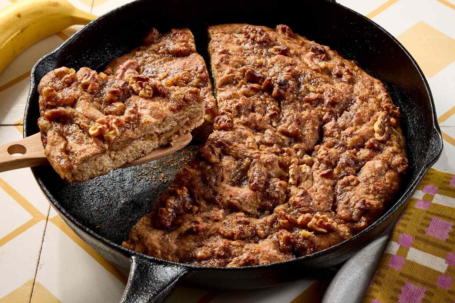 This Banana Bread Focaccia is the mash-up you didn’t know you needed! Part banana bread, part focaccia, this unexpected twist on the classic quick bread is baked in a cast-iron skillet for crisp edges and a soft, tender center. Mashed ripe bananas add natural sweetness and moisture, while olive oil in the dough gives it that signature focaccia richness. It’s perfect warm from the pan or toasted the next day with a smear of nut butter.