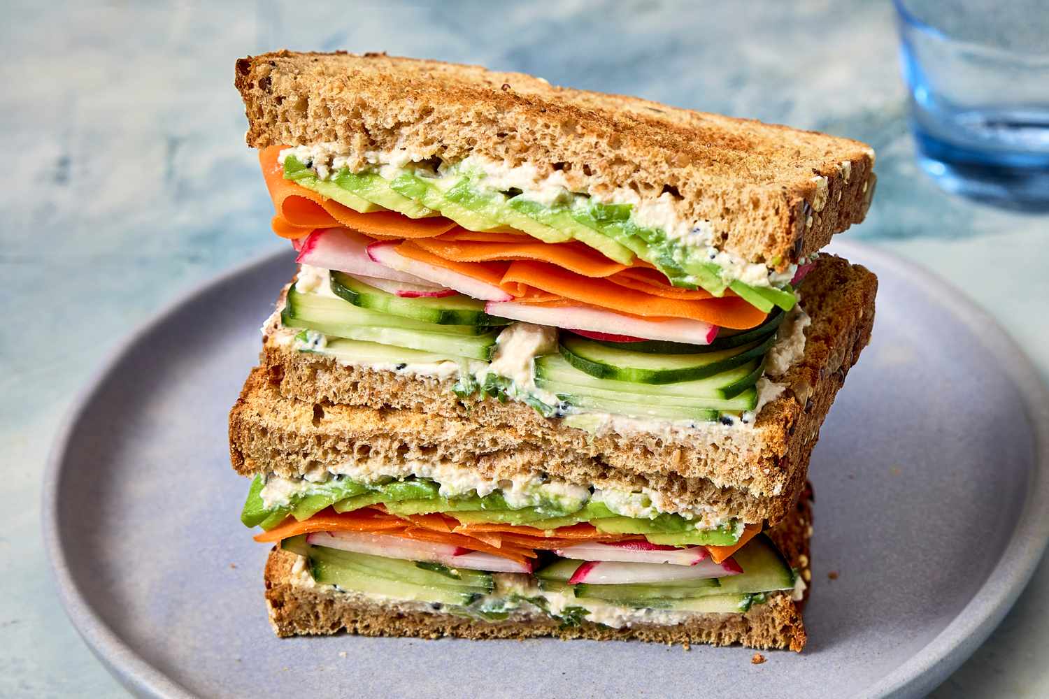 This high-protein cucumber sandwich features a creamy spread made by whipping cottage cheese with white miso, soy sauce and rice vinegar. This mixture delivers a creamy boost of protein that pairs perfectly with sliced cucumbers, which add a crisp, fresh bite.