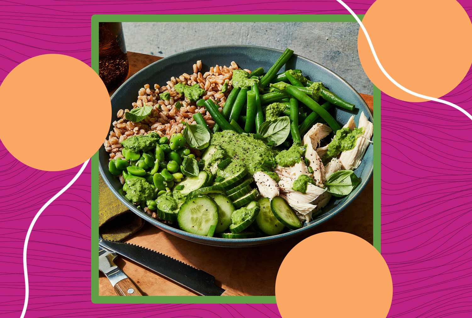 - Grain bowls: With their build-your-own ethos, grain bowls are another dinner that makes it easy to get lots of protein. I typically mix a high-protein whole grain like farro or quinoa with chicken, salmon or beans, some cheese and lots of veggies. If I’m making a plant-based version, I like to make a garlicky, herby strained (Greek-style) yogurt to dollop on top for an extra protein boost. Unsure where to start? I recommend our Lemony Salmon Rice Bowl, Green Goddess Farro Bowl or Chicken-Quinoa Bowls with Strawberries and Pecans.