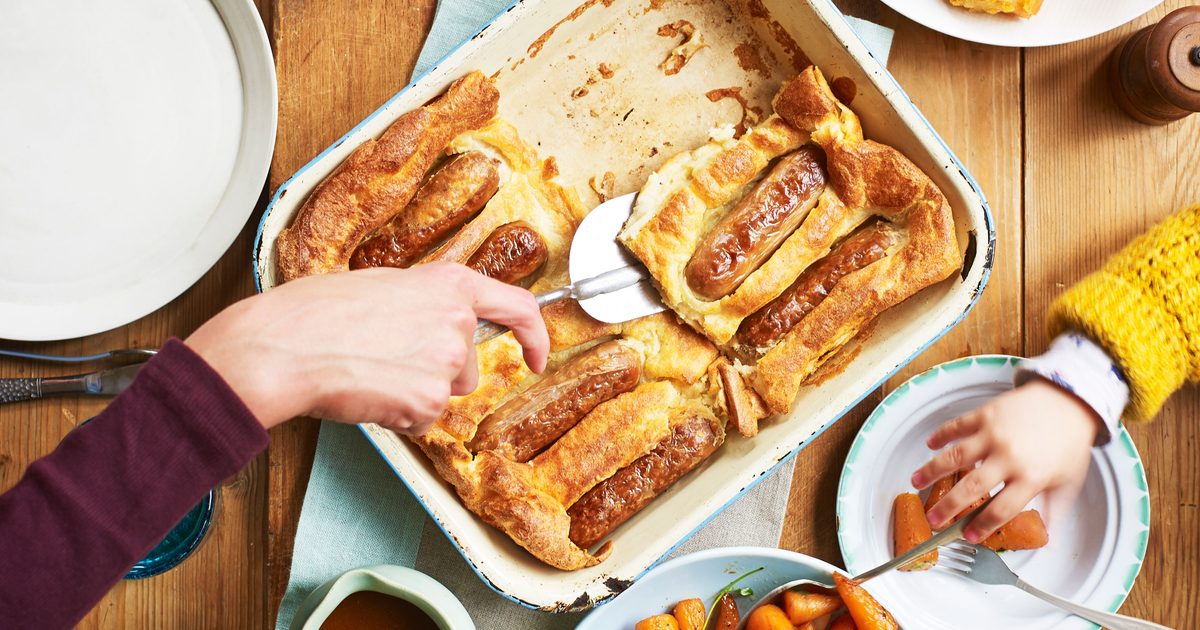 Your cooking repertoire wouldn’t be complete without knowing how to make perfect Yorkshire puddings, an essential part of our veggie toad-in-the-hole. Simply substitute the usual pork sausages for a high-quality vegetarian version and serve with a selection of classic British veg for the ultimate Sunday dinner. You can also partner this recipe with our crunchy polenta roasties, caramelised honey carrots and a rich veggie gravy which uses a spoonul of Marmite for a savoury hit.