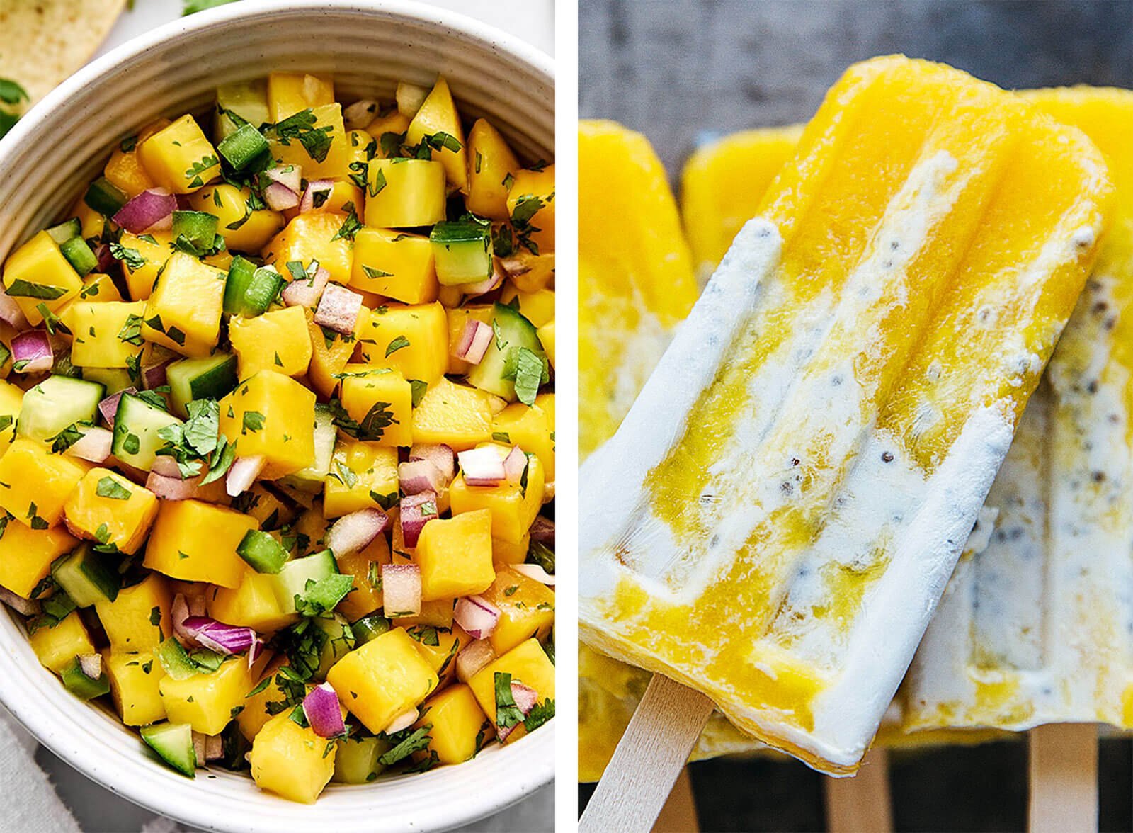 The tastiest mango recipes to make this summer, from small bites, the best mango drinks, and sweet treats—like these coconut chia mango popsicles!