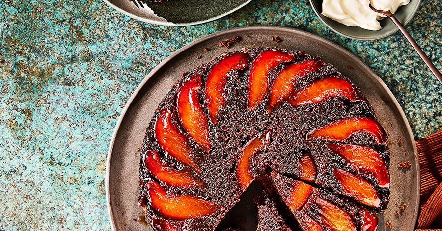 BAeat the butter and both sugars together using an electric whisk for 6-8 mins, or until light and fluffy. Add the eggs, one at a time, beating well after each addition, then mix in the soured cream. Add all the dry ingredients and beat for 10 seconds to incorporate. Spoon the cake mixture over the pears, gently smooth the surface, then bake for 1 hr until a skewer inserted into the middle comes out clean. If any wet crumbs cling to the skewer, bake for a further 5-10 mins. Leave to cool completely in the tin, then invert onto a serving plate and remove the parchment before slicing.