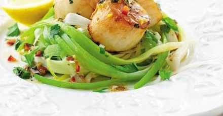 Dry the scallops on kitchen paper and season. Heat a heavy-based pan, then add the oil. Once hot, add the scallops, keeping them close together – this helps the sides to stay straight and tall rather than sagging. Sizzle for 2 mins until caramelised and you can see the heat creeping up the outside. Turn over with a palette knife, then fry for 1 min more. Take off the heat, then add a few good slices of the butter to the pan, spooning over the scallops as it melts.