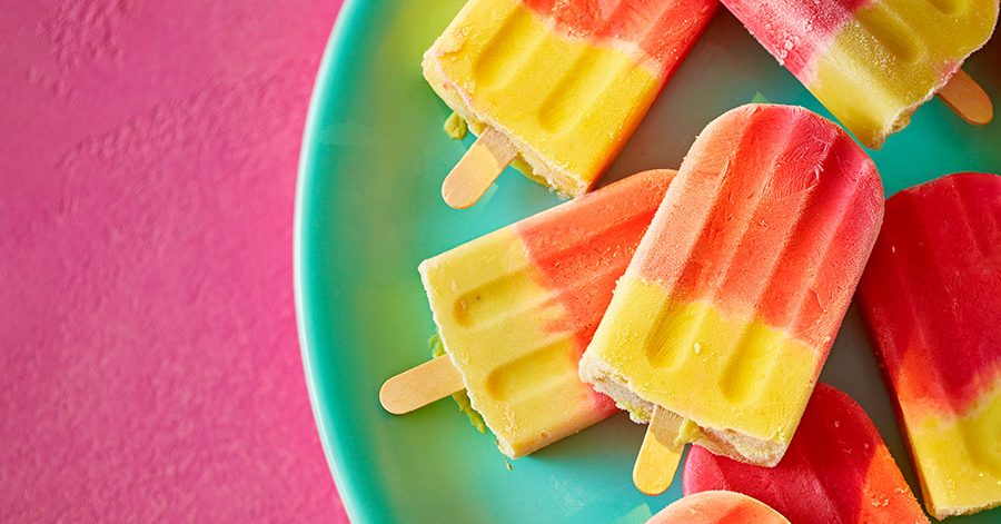 Put the remaining yogurt and honey in a blender with the banana, vanilla and some turmeric for colour, if you like, and whizz until smooth. Tip in to a jug, then pour over the top of the strawberry layer. Freeze for 3 hrs until completely solid. Run the bases under warm water to remove from the moulds if they’re tricky to get out.