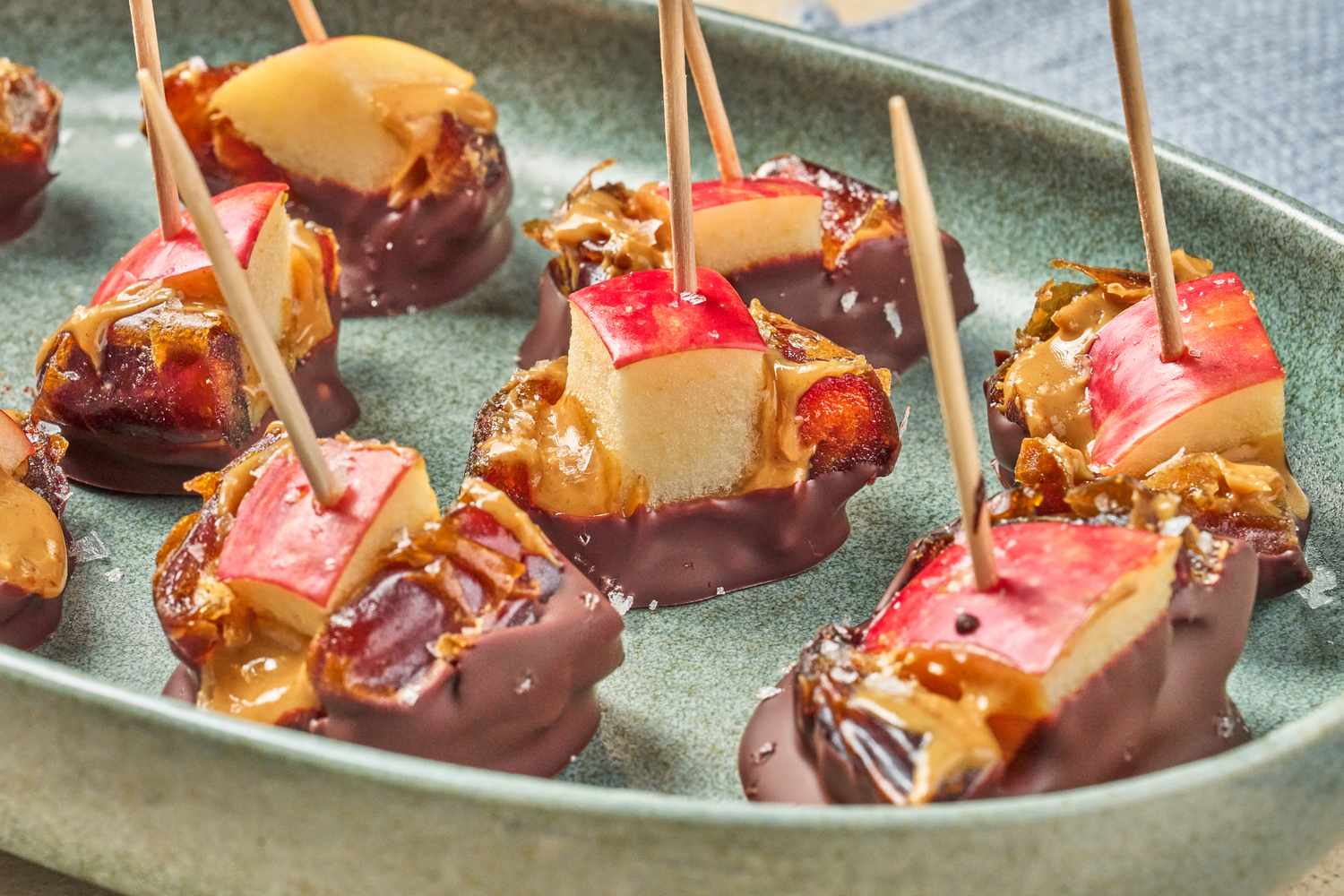 This easy, four-ingredient snack features dates stuffed with peanut butter and apples for a bite that will remind you of a caramel apple. A thin layer of dark chocolate adds the perfect amount of sweetness. Any nut butter works well here—try almond or cashew for a different flavor.
